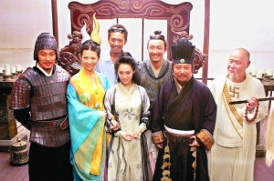 昨天探班現(xiàn)場,拍的正是郭德綱、王學(xué)兵、蔡少芬、鄭中基、譚耀文的戲。