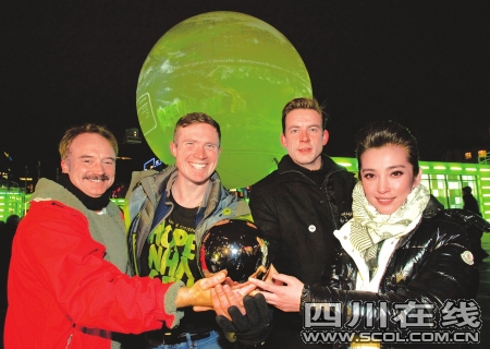 頒獎儀式開始前,頒獎臺上的大屏幕赫然映著一棵干枯的大樹。音樂響起,中國著名演員李冰冰手捧一個(gè)“地球”緩緩走向頒獎臺,然后輕輕將“地球”放下。她的舉動告訴人們,地球是人類的家園,需要人類共同呵護(hù)。