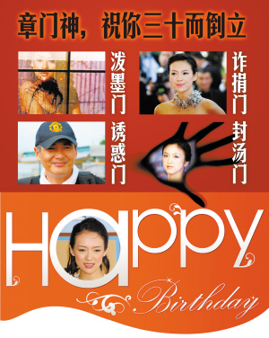 前天是2月9日,章子怡31歲生日,繼“潑墨門(mén)”、“詐捐門(mén)”、“誘惑門(mén)”(周潤(rùn)發(fā)稱出演《臥虎藏龍》時(shí)曾受到某女星誘惑,網(wǎng)友紛紛將懷疑對(duì)象鎖定章子怡)之后,如今又誕生了一個(gè)新的八卦“門(mén)”———“封湯門(mén)”:導(dǎo)演陸川微博發(fā)文引網(wǎng)友熱議,章子怡被指疑似封殺湯唯幕后黑手。