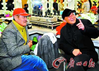 前晚,中國電影集團董事長韓三平一行抵達沈陽,拜會老朋友趙本山。據(jù)悉小字輩的小沈陽沒敢上桌,只是在給趙本山送手機的時候,禮貌性陪了五分鐘便匆匆離開。