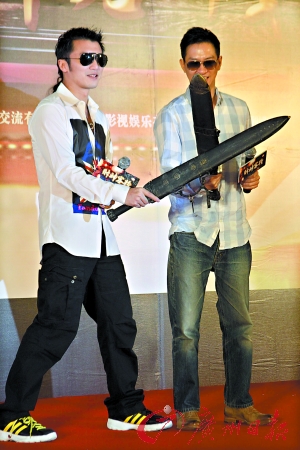 當日,謝霆鋒第二次成為爸爸,他承認自己現(xiàn)在心情大好,拍喜劇片正適合。二人在現(xiàn)場也擺開架勢比賽拔劍速度,兩人戲中有不少對打戲份,而家輝透露戲里,謝霆鋒武功高強,“他的責任就在打,我的責任在搞”。張家輝更笑指謝霆鋒:“他生孩子很有本事。”
