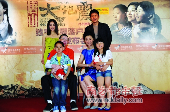 昨日,即將于7月22日在內(nèi)地、香港、臺灣同步上映的《唐山大地震》在搜狐網(wǎng)開通了電影官方網(wǎng)站,導(dǎo)演馮小剛攜主演徐帆、張國強(qiáng)等出席發(fā)布會與網(wǎng)友一同分享了他們關(guān)于30年前的記憶,并首度向外界公布了影片中“張國強(qiáng)、徐帆一家”的全家福照片。而在隨后的采訪中,馮小剛則否認(rèn)了徐帆因為是自己妻子才得以出演《大地震》的傳聞,“徐帆的水平在那兒擺著,她撐起了這部電影的魂。”同時,對于影片的票房,馮小剛再次放出豪言,“誰不服,就和《大地震》同天上映!”