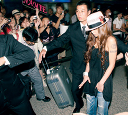 昨日下午4點(diǎn)30分左右,安室奈美惠搭乘從東京起飛的JL621航班抵達(dá)上海,在大批隨行人員的簇?fù)硐伦叱銎謻|機(jī)場的到達(dá)通道。雖然素有潮流天后之稱,不過昨日安室奈美惠抵滬時(shí)的行頭頗為樸素。下著寬松九分藍(lán)色牛仔板褲,上身則是一件黑色長背心裙,裝扮看似隨性,但在一頂造型感十足的寬沿粉色草帽的映襯下,出現(xiàn)在歌迷和媒體眼前的安室星味十足。