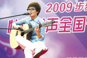 曾:嗯,最初是寫歌詞,當(dāng)時(shí)是初三,因?yàn)榭荚噳毫Υ,就自己涂涂畫畫寫出來了。開始有曲譜配歌詞是高三的時(shí)候,會(huì)彈吉他了!秾W(xué)習(xí)×××的日子》(由于她說話聲音實(shí)在太綿羊,重復(fù)了3次,記者還是沒聽清楚歌名),是一首校園歌曲,這是第一首完整的歌,也是完整的曲,就為了鼓勵(lì)考英語專業(yè)四級(jí)的人們,加油、努力,只唱給自己的朋友聽過。大家覺得,還行吧。