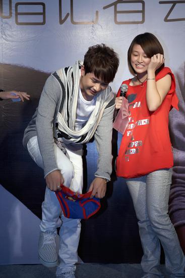 9月8日發(fā)行新專輯《木頭人》后,阿穆隆在本次簽唱會上首次與歌迷進行面對面交流,歌迷們把握住難得的機會,為偶像送上《木頭人》MV中的“木頭心”、專業(yè)定制的麥克風和超人內(nèi)褲作為禮物慶賀阿穆隆順利發(fā)片,寓意著“木頭人”阿穆隆拿著麥克風在舞臺上唱歌時即刻變身為“音樂超人”。值得一提的是,歌迷送上的麥克風是專門為阿穆隆量“聲”定制的森海塞爾專業(yè)麥克風,更在麥克風上用施華洛世奇水晶鑲上了阿穆隆歌迷會的LOGO,在此之前張惠妹、韓紅、孫楠等天王天后們曾在該品牌為自己定制了專屬于自己的麥克風,此次歌迷送上如此大禮讓阿穆隆坐享“天”字號藝人的待遇,讓阿穆隆感動不已,倍受鼓舞。