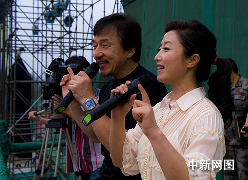 中新網(wǎng)9月27日電 國慶聯(lián)歡晚會9月26日下午在北京郊區(qū)某地進(jìn)行了最后一次排演。記者從聯(lián)歡晚會指揮部獲悉,聯(lián)歡會將于10月1日晚22點開始,共分為《和諧中國》、《騰飛中國》、《嶄新中國》和《同歌共舞》四個篇章,近6萬人參加表演,70余位著名歌手現(xiàn)場高歌,而成龍、劉媛媛將以一首《國家》在最后一個篇章中出場。