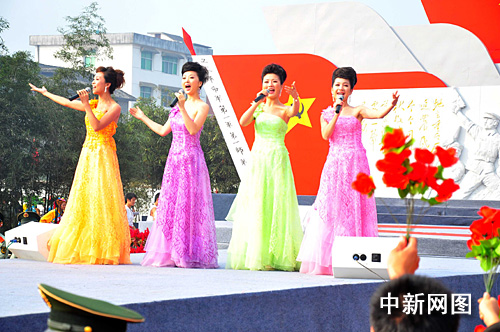 中新網(wǎng)銅鼓9月3日電(段長(zhǎng)征 劉占昆)10月3日上午,為慶祝新中國(guó)60周年華誕,“為祖國(guó)喝彩”—《中國(guó)紅歌會(huì)》首次走進(jìn)小縣城江西銅鼓,曲措、徐丹、梅林組合、蔡飛等近40名歷屆優(yōu)秀紅歌手激情獻(xiàn)唱。