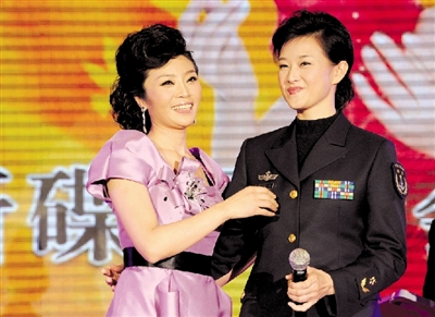 中新網12月24日電 (李季)23日下午,著名女高音歌唱家李丹陽在北京舉行新年新碟視聽會,徐沛東、金鐵霖、閻肅、郁鈞劍、楊洪基、濮存昕、潘長江等眾星悉數現(xiàn)身,宋祖英以李丹陽“閨蜜”身份出席;顒蝇F(xiàn)場,當進行默契大考驗環(huán)節(jié)時,兩位好友對于誰先“發(fā)言”互相推讓,宋祖英不想搶好友風頭直說“你是主角你先說”,李丹陽則稱“你是團長你先來”。