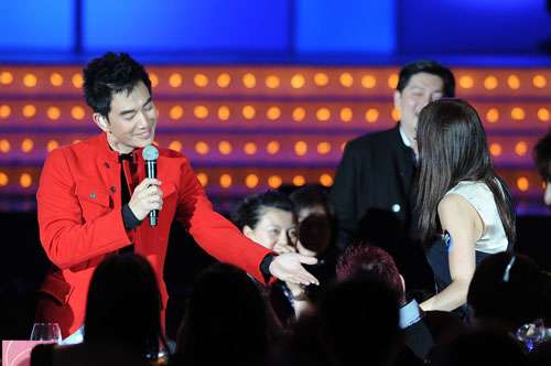 中新網(wǎng)2月22日電 任賢齊年初七在澳門舉行“任賢齊星級晚宴演唱會”,邀請了陳冠希愛將農(nóng)夫擔(dān)任表演嘉賓,關(guān)心妍與老公楊長智前來捧場。小齊在臺上不忘向觀眾拜年及大派禮物,其后走到臺下四處獻(xiàn)吻及任攬任抱,事后任賢齊笑言感覺很幸福。