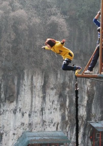 譚志玲在所有的選手當(dāng)中,一向以膽小著稱,認(rèn)識她的人都覺得她是一個文靜、可愛、膽子又非常小的女生。但是在“與JAY同型”的選秀活動中她做出了驚人的決定,挑戰(zhàn)自己膽小的性格,去冒險(xiǎn)蹦極。屬于極限運(yùn)動的蹦極,敢于挑戰(zhàn)它的人都在少數(shù),像譚志玲這樣?jì)尚〉呐ヌ魬?zhàn)更是少之又少。而她這個勇敢的決定也讓她體驗(yàn)了一把勇敢者的刺激和高空墜落的快樂。在她的博客中她這樣寫道:“我不斷努力的去追逐自己的夢想!不管路途中遇到多少挫折都要堅(jiān)強(qiáng)的面對與克服!當(dāng)你最后成功的那一刻那你就是最“型”的!就像蹦極一樣!很多人都想讓自己成為很勇敢的人,去做很多人不敢嘗試的事!可是但真的面臨的時(shí)候心里又會打退堂鼓!但其實(shí),當(dāng)你站上蹦極臺你已經(jīng)不能后退了,如果你選擇放棄那你永遠(yuǎn)就只會原地踏步!你不去挑戰(zhàn)你又怎么知道自己還可以走多遠(yuǎn)呢?”
