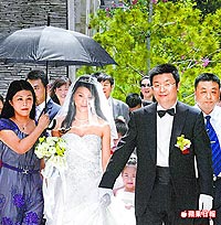 昨早9時(shí)男方以6輛奔馳車隊(duì)至女方家迎娶,親友幫新娘撐的卻是黑傘,依民間習(xí)俗,一般新娘出嫁時(shí),親友會(huì)以米篩遮陽(yáng),如果是撐黑傘,多半意味新娘腹中有喜。問(wèn)新人是否有喜時(shí),他們只說(shuō)“謝謝”,未正面回答。證婚人鳳凰衛(wèi)視主席劉長(zhǎng)樂(lè)入場(chǎng)時(shí),被媒體問(wèn):“小孩是男的?女的?”他也未作答。