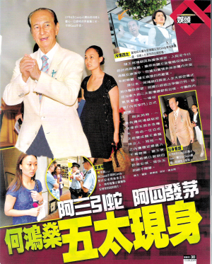 因?yàn)樽矀^部,賭王何鴻燊入院至今已經(jīng)超過兩周,情況不容樂觀。據(jù)香港媒體報(bào)道,連日來,何鴻燊四房家人全天候前往醫(yī)院探望,就連已經(jīng)退出爭寵行列、移居加拿大的二太太藍(lán)瓊纓也現(xiàn)身醫(yī)院。但被何鴻燊秘密“收起來”的五太太卻被三太太和四太太擋在醫(yī)院外。這位五太太實(shí)在不簡單,她從一位白衣天使變成賭王寵愛的女人,短短一年之內(nèi)獲贈總值達(dá)8000萬元的物業(yè),賭王更曾為她開口教訓(xùn)四太太梁安琪。