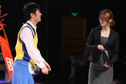 導(dǎo)演黃盈借用幼兒園的小朋友來(lái)探討婚姻的段落充滿童趣,5個(gè)演員手拿布偶在臺(tái)上做起了小孩子的游戲。其中當(dāng)“蜘蛛俠”用“蠟筆小新”的語(yǔ)氣說(shuō)出:“我要代表正義欺負(fù)你!”時(shí),全場(chǎng)觀眾全被這種童真的話語(yǔ)逗樂(lè)。最后,小女孩“悠悠”似乎說(shuō)出了婚姻的真諦:“酷不酷不重要,重要的是和喜歡的人一起做喜歡的事!