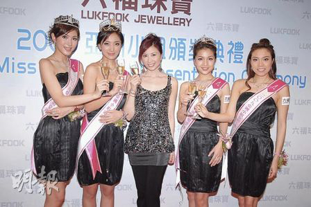 中新網(wǎng)11月6日電 出爐亞姐冠軍許瑩、亞軍王希瑤、季軍許嘉慧及友誼小姐張加慧,昨天中午出席后冠及首飾領(lǐng)獎(jiǎng)活動(dòng)。港姐楊寶玲也專程回港為亞姐冠軍加冕。