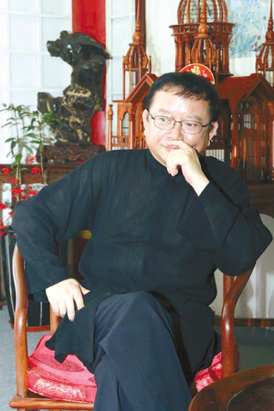 記者問王剛收藏品占他全部家產(chǎn)的多少,沒想到王剛停頓一下后回答:“百分之七十吧。我家除了一件沙發(fā),全部是古董!闭f到古家具,王剛興致很高,“我睡的那張雕花架子床有180年歷史。屋里還有一張羅漢床,三面有圍擋,沒想到是為兒子買的。兒子不會走路時在上面玩最安全。圍擋上還刻著房子、樹木等浮雕,兒子特喜歡!