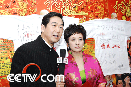 據(jù)悉,此次賑災(zāi)義演將于農(nóng)歷初三下午三點在央視四套播出,同時在春節(jié)期間還將重播。但記者還獲悉,除了這次的賑災(zāi)義演,“中華情”欄目在春節(jié)期間,將分組深入到安徽、四川、貴州、云南等受災(zāi)地區(qū)和富有典型意義的農(nóng)村、廠礦、部隊、僑鄉(xiāng)和少數(shù)民族地區(qū),制作《中華情•情暖2008》春節(jié)系列主題節(jié)目。該系列節(jié)目旨以文藝節(jié)目的形式慰問、鼓舞受冰雪災(zāi)害人民群眾志成城戰(zhàn)勝災(zāi)害,同時將極富中國特色的民族民間文化展現(xiàn)給海內(nèi)外廣大觀眾,展現(xiàn)當代中國蓬勃向上的時代風貌。