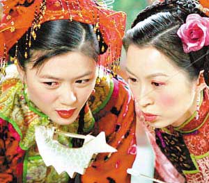 《李小環(huán)與苗翠花》里的兩位女主角田海蓉、郭藹明是一對師出同門、并肩走江湖的“奪命花環(huán)”的姐妹花;“文弱書生”方德也變成了拳腳了得的方天橫,功夫甚至比李小環(huán)與苗翠花更勝一籌,讓兩姐妹情不自禁地拜倒在他的魅力之下!霸俸玫慕忝弥灰矚g上同一個(gè)男人,肯定都會(huì)翻臉,我和李小環(huán)在戲中整天為了方德吵架甚至大打出手,每次都搞得衣冠不整的!惫\明說起和田海蓉的合作,臉上露出嬌柔的微笑:“雖然戲里我們是情敵,但是拍起來可是非常有默契,每次演的時(shí)候,不用導(dǎo)演多解釋,我們彼此一個(gè)眼神就夠了。而戲外,我們簡直就是連體嬰兒,好得‘難舍難分’,海蓉特別照顧我,比如我的頭飾歪了,她就會(huì)細(xì)心地幫我弄好,所以拍這部戲最大的收獲就是讓我結(jié)識(shí)了一個(gè)好姐妹!(記者 陳羽中)