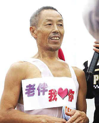 最溫情選手:重慶羅大爺借參加比賽向戀人示愛的選手很多,但沒有一個(gè)比來自四川重慶的羅大爺更讓人震撼。他身貼“老伴我愛你”的字樣參與《智勇大沖關(guān)》,面對(duì)鏡頭對(duì)電視機(jī)前的老伴喊道:“老伴,我愛你!辟|(zhì)樸而真摯的語(yǔ)言贏得了現(xiàn)場(chǎng)觀眾熱烈的掌聲,也感動(dòng)了電視機(jī)前的觀眾,被一致推選為最令人感動(dòng)的溫情選手。 (易哲)