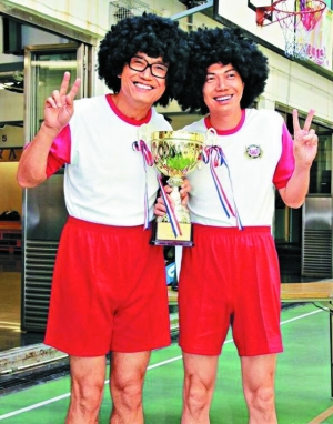 51歲的苗僑偉和41歲的謝天華前日在一間小學續(xù)拍無線新劇《老公萬歲》,二人為了搞笑戲分,不惜自毀形象,穿著運動校服配爆炸頭出鏡,謝天華更提議與苗僑偉將褲頭拉高束腰,“越薯(粵語指傻里傻氣)越好”。兩人在《學警狙擊》中的“Laughing哥”和“孝哥”角色都以型男著稱,這次自拆招牌,兩人不但不擔心形象受損,謝天華還搞笑地表示,“我還擔心粉絲更多了呢!”苗僑偉透露戲中尚有多個搞笑造型,比這個爆炸頭更出彩,希望能帶給觀眾驚喜。