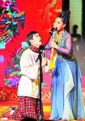 不知是“生產(chǎn)快樂”的口號起了作用,還是趙本山的人緣太好,總之,在這個二人轉(zhuǎn)的大日子里,張藝謀、馮小剛、郎昆等不同領(lǐng)域的名導(dǎo)齊齊捧場;成龍、宋祖英、那英、姜文、葛優(yōu)等一線大腕均盛裝出席;國內(nèi)電視臺的“名嘴”更是無一缺席:楊瀾、竇文濤、倪萍、白巖松等圈內(nèi)大腕的道賀,令當晚的劉老根大舞臺的明星陣容堪比國內(nèi)任意一屆頒獎典禮。成龍首次舞著扇子出場,戲言:“能上劉老根大舞臺,也是我的夢想,不過我只能跑龍?zhí),他們的嘴太快了,我普通話不行!币恢痹谛麚P傳承中國傳統(tǒng)文化的成龍稱有300年歷史的“二人轉(zhuǎn)”是“世界的寶物”:“古老的中國藝術(shù)都要保留,這不止是我們的,它是世界的寶物。”在“劉老根大舞臺”南邊,距離不到一公里的地方就是德云社劇場,同樣都是曲藝表演的熱點人物的郭德綱也來湊熱鬧,“好事呀,街坊開張我來慶祝。我來倒點他的票出去賣!眴柕搅思磳㈤_業(yè)的“劉老根大舞臺”對德云社的演出是否有影響時,郭德綱的回答也很干脆,“非常歡迎二人轉(zhuǎn)來北京,如果劉老根大舞臺對肯德基、麥當勞沒影響,那對我們也沒影響!