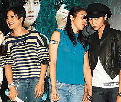 中新網(wǎng)10月17日電 鄭伊健新舊戀人蒙嘉慧和邵美琪昨日公開碰頭,二人沒有正面交流,在臺上合照時分別站在黎姿左右,蒙嘉慧突然與黎姿姊妹情深,手拖手耳語,但亦難掩尷尬神色,相反見慣風(fēng)浪的邵美琪則沒有理會蒙嘉慧,在活動完畢后即箭步離場。