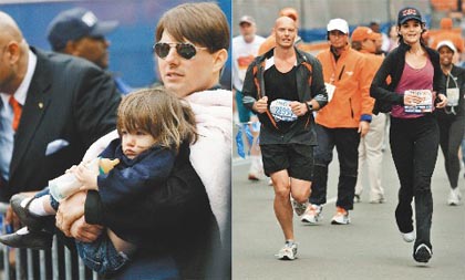 中新網(wǎng)11月6日電 據(jù)臺灣聯(lián)合報報道,昨日,紐約馬拉松路跑大賽上,出現(xiàn)一個有點眼熟的身影,原來正是薄施脂粉的凱蒂·荷姆絲。為了避免驚動旁人,她以化名參加比賽,最后花了近5個半小時跑完全程,得到第58名。在計分板上,她則使用本名,而她的丈夫湯姆·克魯斯抱著小女兒蘇蕊守在終點,等她一結(jié)束,立刻沖上去獻吻,一如預(yù)期再次成為鎂光燈捕捉的焦點。