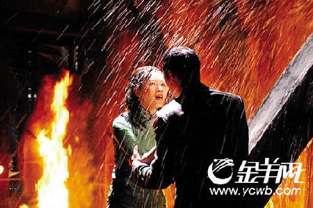 白流蘇與范柳原在戰(zhàn)火中深情相擁的一刻是《傾城之戀》最經(jīng)典的一幕。據(jù)了解,為了再現(xiàn)張愛玲筆下的那段傳奇,劇組花了數(shù)月時(shí)間在香港街重新布置,力求真實(shí)地再現(xiàn)上世紀(jì)30年代香港的繁華。拍攝當(dāng)晚,橫店影視城香港街在炮火連天中瞬間崩塌,熊熊燃燒的火光照透半邊天,到處充斥著戰(zhàn)火的味道,偌大的香港街在傾盆大雨中“失了火”。這些戰(zhàn)火和爆炸聲都是為了烘托香港淪陷后白流蘇與范柳原在劫難后重生的愛情。