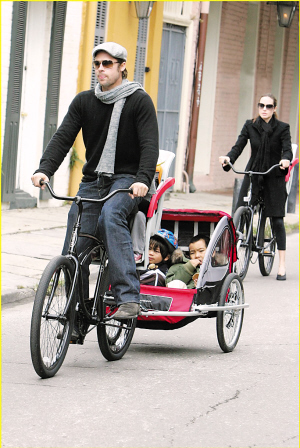 布拉德·皮特早前宣布為新奧爾良第9街重建150間房屋的“Make It Right”計劃,現(xiàn)得到威爾·法瑞爾等人的支持,認投資助興建其中一間房間。心情大好的布拉德·皮特和嬌妻安吉麗娜·朱莉帶孩子們郊游,當(dāng)起了“人力車夫”。