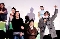 一位星爺?shù)哪蟹劢z公開“指責(zé)”星爺從演員到導(dǎo)演的轉(zhuǎn)型并不是很成功,“我為您設(shè)計(jì)了一個(gè)更有創(chuàng)意的方案,希望您能看一下!毙菭斶B忙讓工作人員把方案遞到臺(tái)上,看完驚呼,“原來(lái)是劇本,為什么不早點(diǎn)給我?”而更令星爺意外的是接下來(lái)一個(gè)男觀眾要當(dāng)場(chǎng)向女友求婚,并請(qǐng)星爺當(dāng)證婚人。星爺估計(jì)也被這陣勢(shì)嚇了一跳,一時(shí)間不知作何回答。不過(guò)隨后星爺還是按照程序履行了自己的義務(wù),還現(xiàn)場(chǎng)解下圍巾當(dāng)作禮物,張雨綺也摘下項(xiàng)鏈送給這對(duì)大膽的情侶。徐嬌自稱很窮沒(méi)禮物可送,但即興表演了一段倫巴,有模有樣的舞姿不僅引得干爹星爺開心大笑,還博得了所有觀眾的掌聲。一場(chǎng)影迷見面會(huì)基本成為一個(gè)求婚儀式,星爺也從絕對(duì)的主角暫時(shí)淪為配角。至于那位“女朋友”,她在臺(tái)上幸福得滿眼淚花,說(shuō)不出話來(lái),在星夜和觀眾的“起哄”聲中,接受了男朋友送的玫瑰。(記者 馮遐)