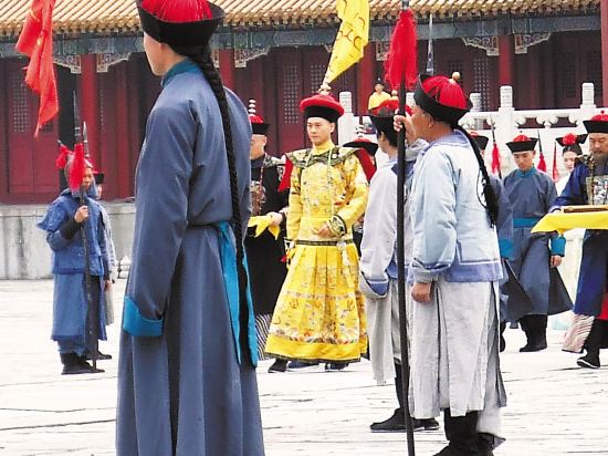 隨著鄭少秋的歸隊(duì),《書劍恩仇錄》劇組昨天又成了橫店的人氣明星。記者看到劇組的通告上寫著,鄭少秋上午9點(diǎn)就到片場了,但偌大的明清宮里,根本見不到他的身影,只有一幫守衛(wèi)的“士兵”,站在廣場和太和殿之前,一副戒備森嚴(yán)的樣子。