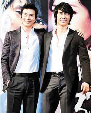 17日晚,《宿命》首映禮在首爾舉行,兩大主演宋承憲、權相宇一同出席了儀式,互摟著膊頭做宣傳,非常親昵。不過兩人在戲中卻演繹由好兄弟變仇人的故事,權相佑扮演背叛兄弟的大反派,影片將在20日在韓國上映。因為權相宇和宋承憲在亞洲的人氣,首映式還吸引了約100名來自中國、日本等亞洲其他國家的fans。