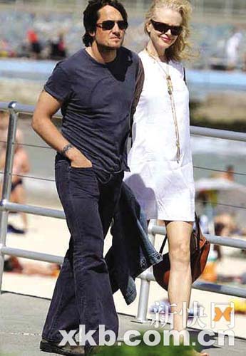 圖文:妮可·基德曼和丈夫漫步沙灘 孕味十足
