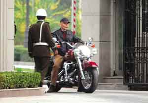 日前某天下午記者看見葛優(yōu)騎著一輛嶄新的國(guó)產(chǎn)某品牌大型摩托車駛出別墅大門,他穿著休閑夾克,戴著一頂棒球帽,端坐車上,滿臉含笑,經(jīng)過大門時(shí)還主動(dòng)朝保安點(diǎn)頭,看上去心情超爽,一出別墅大門,葛優(yōu)便加大油門,繞著別墅疾馳起來(lái),他姿態(tài)瀟灑,動(dòng)作嫻熟,仿佛是一位正在前去參加“方程式”比賽的摩托騎手。幾分鐘后,葛優(yōu)結(jié)束了這次短暫的兜風(fēng),帶著煥發(fā)出的一種少有的活力返回別墅。卓 偉