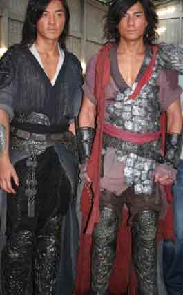 發(fā)布會上,郭富城和鄭伊健以片中造型登場,郭富城身披紅衣鎧甲,而鄭伊健則一襲鎧甲,飄逸俊朗。