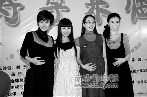 年明星懷孕生子又成熱潮。連陶虹,左小青都成大肚婆啦!昨天,都市喜劇《好孕來臨》在北京開機。陶虹、左小青等四位女星挺著大肚子出現(xiàn)在媒體面前,還互比誰的肚子大!