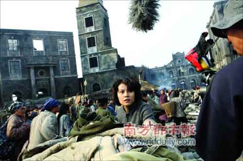 陸川的《南京,南京》以一種摧枯拉朽,再重建一切的方式呈現(xiàn)在探班記者面前,包括重建主演高圓圓。