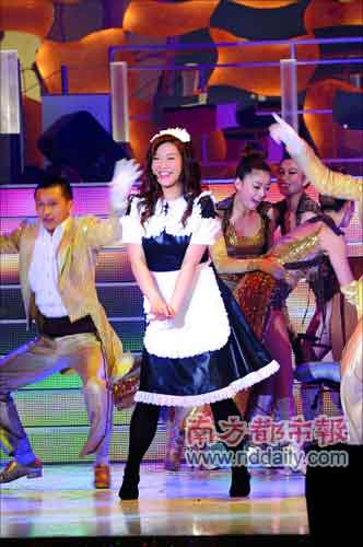 隨著胡楓一聲大喊:“歡迎光臨麗花皇宮,”恍惚又回到了當年肥姐的麗花皇宮時代。劉雅麗、陳潔靈開始大秀歌舞,一身女傭打扮的欣宜則作為招待在招呼客人,看到別人載歌載舞心癢癢,于是跳出來主動要求表演,結果還穿著女傭服裝的她又唱又跳了一曲《我要》,贏得眾人的掌聲。接下來,欣宜又換上黑色連身裙唱了一曲《IWILLFOLLOWHIM》以及《勁草嬌花》,引得不少觀眾在座位上大叫“欣宜,欣宜”。