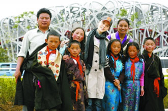 由國家廣電總局主辦的一場(chǎng)以奧運(yùn)為主題的慈善晚會(huì)正在緊張地籌備之中,其中邀請(qǐng)了六位來自四川藏區(qū)希望小學(xué)的同學(xué)參加。范冰冰贊助了幾位藏族小朋友的往返機(jī)票并抽空陪同他們一起參觀奧運(yùn)場(chǎng)館。圖為范冰冰帶領(lǐng)大家參觀奧運(yùn)會(huì)的主場(chǎng)館“鳥巢”。記者 楊林