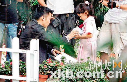 謝霆鋒和張靜初前日到香港公園為英皇電影《證人》秘密開工拍攝。前日拍攝的是小妹妹把畫板交給負(fù)傷的霆鋒的戲份,霆鋒則要將手上的食物盒交給小妹妹。與張柏芝育有一子的霆鋒,經(jīng)常被追問會否再為人父,前日在片場所見,他與小女孩演對手戲時分外細(xì)心,儼如慈父般與對方拍戲。鏡頭后亦不時逗小妹妹玩樂,小妹妹亦顯得相當(dāng)高興?赡芴鞖饪釤峒由闲⊙輪T演出經(jīng)驗不多,難免出現(xiàn)NG情況,但霆鋒亦愿意耐心教導(dǎo),又不時與她聊天,與小演員相處十分融洽。