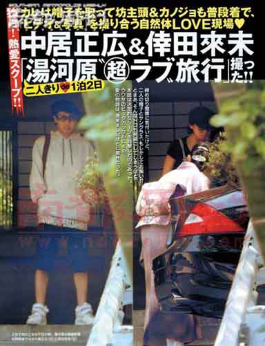 5月30日發(fā)售的《Friday》刊登了一組幸田來未和中居正廣共游溫泉?jiǎng)俚氐恼掌。?007年夏兩人傳緋聞以來,這是媒體第一次拍到照片。幸田來未(25歲)和中居正廣(35歲),相差10歲的戀情堂而皇之地登上刊頭。