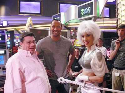 導(dǎo)演安迪·菲克曼、男主角巨石·強(qiáng)森和“外星公主”黃圣依