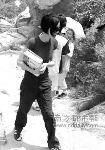 王菲抱《本草綱目》爬山。