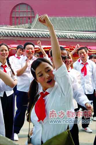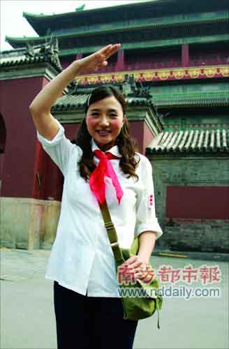 白襯衣、紅領巾、黃書包……6月15日下午,阿朵現(xiàn)身北京鼓樓大街胡同,為新歌《啦啦隊歌》拍攝MV。這首收錄于她新專輯的歌曲由阿朵一手包辦詞曲,旨在為08北京奧運搖旗吶喊。拍攝現(xiàn)場,阿朵與同門師弟后舍男生還有工作人員齊上陣,整齊劃一的加油手勢,營造出朝氣蓬勃的氣氛。