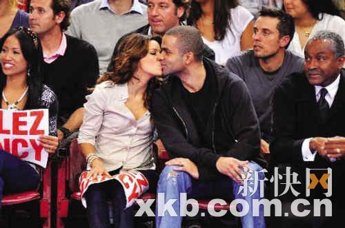 6月15日,NBA圣安東尼奧馬刺隊(duì)當(dāng)家球星托尼·帕克攜愛(ài)妻伊娃·朗格莉亞現(xiàn)身巴黎,觀看法國(guó)籃球聯(lián)賽的決賽,為兄弟TJ·帕克加油打氣。伊娃與帕克接吻大秀恩愛(ài),兩人儼然成了比賽場(chǎng)邊最耀眼的明星。