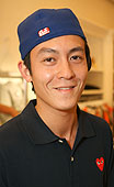 陳冠希(Edison)出席美國(guó)加州比華利山(beverly hills)時(shí)裝店舉行的燒烤派對(duì),戴上印有“好正”中文字樣帽子。
