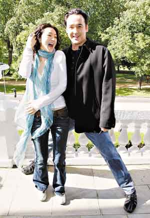 一身休閑裝扮的鞏俐(左)顯得優(yōu)雅又有活力,開懷大笑的她在約翰·庫(kù)薩克身邊可謂風(fēng)情萬(wàn)種.