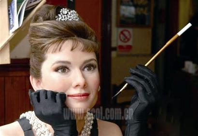 6月18日,已故女星奧黛麗·赫本的蠟像進(jìn)駐杜莎夫人蠟像館。她的蠟像脫俗美麗,絲毫不輸本尊,其音容宛在令人魂?duì)繅衾@。