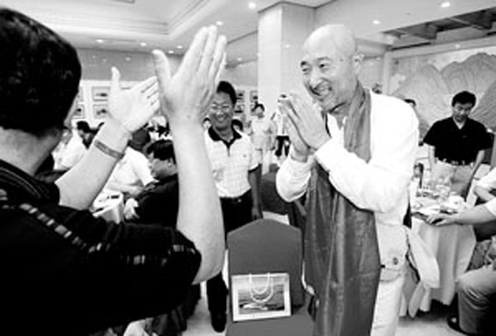 “陳老師,您來了怎么也不吱一聲!”還有人走過來,親手為陳佩斯戴上一條藍(lán)色哈達(dá)。