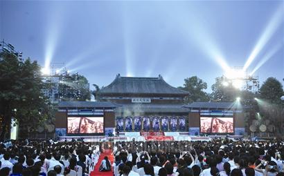 夜幕降臨,典禮正式開始,薦馨殿前3米多高、20多米長的3層舞臺氣勢非凡,舞臺上10個(gè)醒目的大鼓和飄揚(yáng)的戰(zhàn)旗呈現(xiàn)出三國時(shí)代金戈鐵馬的風(fēng)貌。觀眾的耳畔響起震天的喊殺聲和咚咚戰(zhàn)鼓,數(shù)十名披著盔甲的蜀國士兵揮舞紅旗沖上臺擺好軍陣,這時(shí)近百名兒童念著蘇軾的《赤壁懷古》從舞臺上緩緩走下。之后,本土川劇演員還表演起變臉吐火,他們的臉譜盡是三國猛將,臺下的吳宇森導(dǎo)演看得如癡如醉。值得一提的是,舞臺兩個(gè)大屏幕播放了10分鐘的《赤壁》片花,其中很多都是當(dāng)天成都上映沒有呈現(xiàn)的部分,讓影迷看了大感過癮。