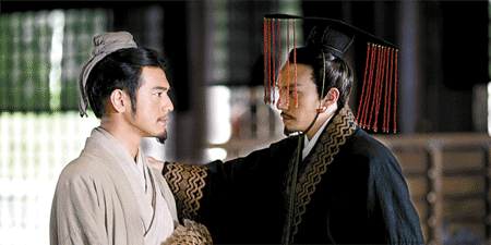 張震:那次是開玩笑啦,不過演“王族”的確蠻爽的(笑)。我記得第一天拍孫權(quán)上朝的戲,諸葛亮要說服我讓孫劉結(jié)盟,到了現(xiàn)場我感覺挺震撼的———那是很大很大的宮殿,兩邊立著文武百官。我穿好衣服,趕緊跑著坐上“王位”,我想,得趕快習(xí)慣一下,因?yàn)檫@個(gè)角色天天都是這樣的。上去之后,我一開口,所有人都安靜了。